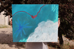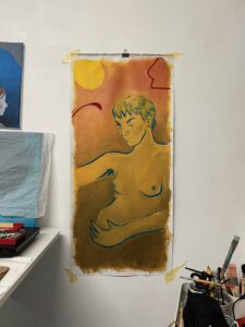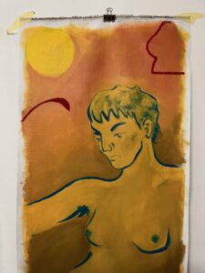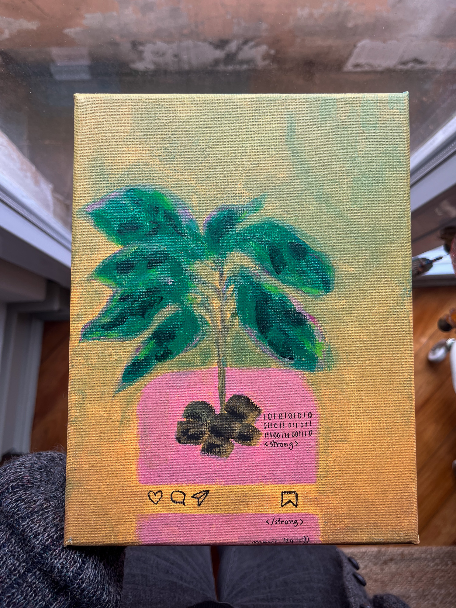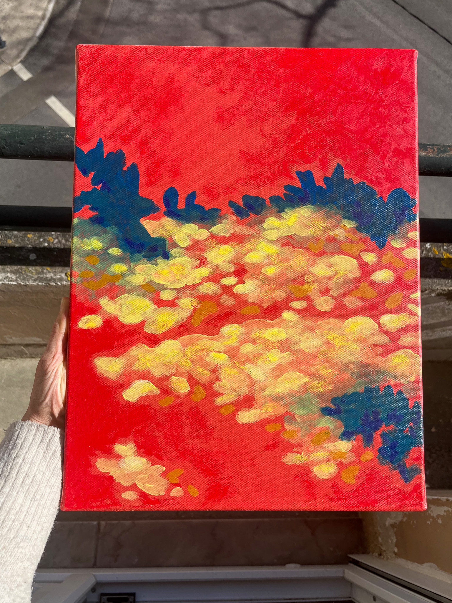 Acrylic and oil pastel on cut-to-size canvas