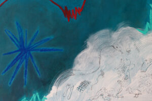 Acrylic, gesso, oil pastel and graphite on canvas