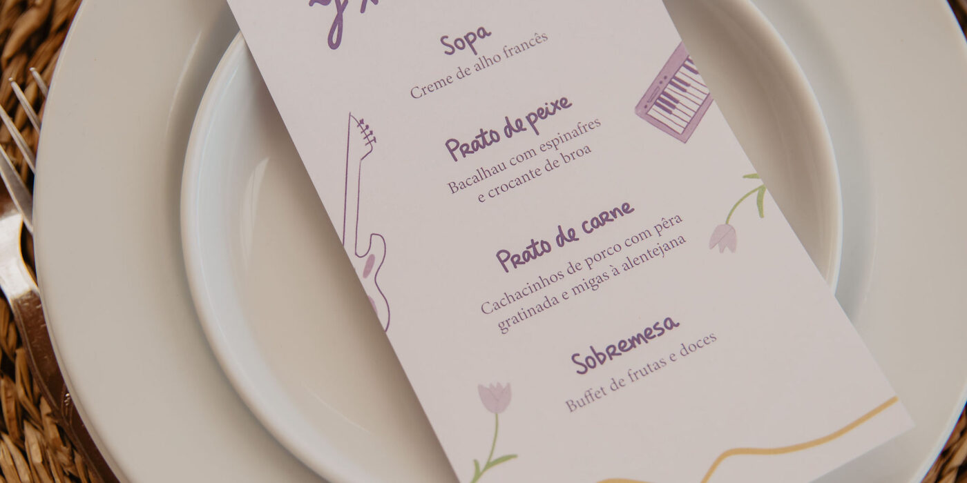 Tinha sido desafiada, no final de 2023, para desenhar o estacionário do evento. Assim, ao longo dos primeiros meses de 2024, e sempre fora do horário de expediente, trocámos mensagens e chamadas para alinhar a identidade gráfica do grande dia.